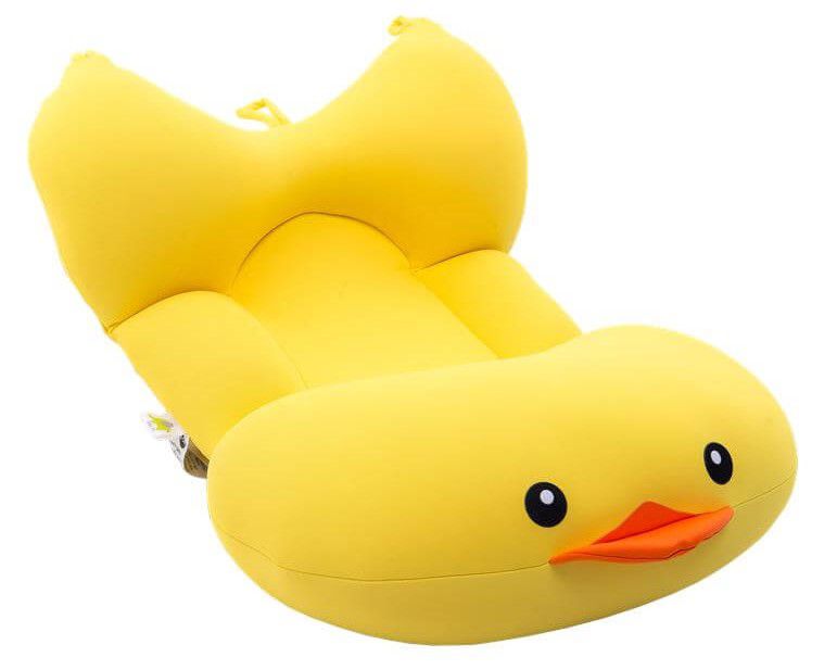A almofada absorve e mantém a temperatura da água, mantendo o corpo do bebê sempre aquecido