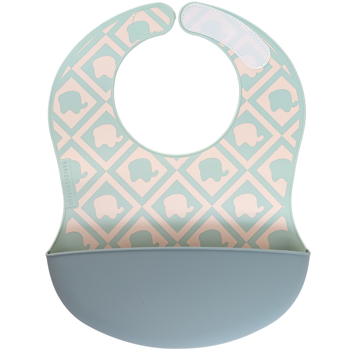 Babador de Silicone Grande Cobertura Total Elefante Ollie Verde Menta - Marcus & Marcus
