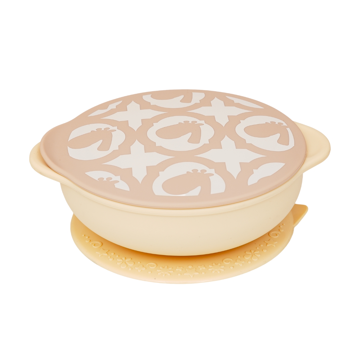 Tigela com Sucção e Tampa em Silicone Amarelo Manteiga Marcus & Marcus