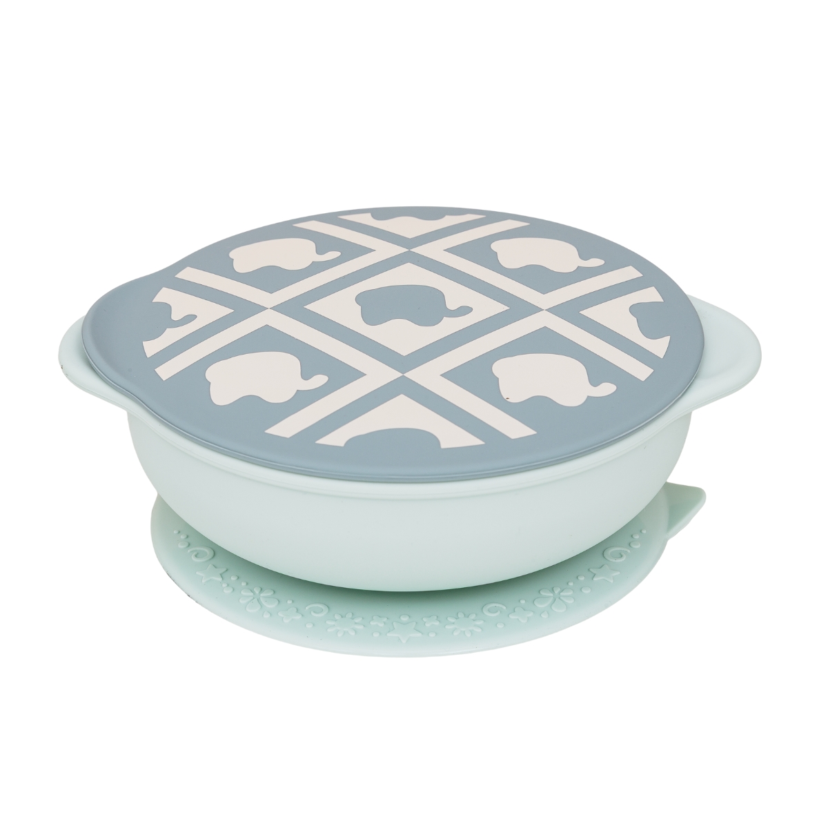 Tigela com Sucção e Tampa em Silicone Elefante Ollie Verde Menta Marcus & Marcus